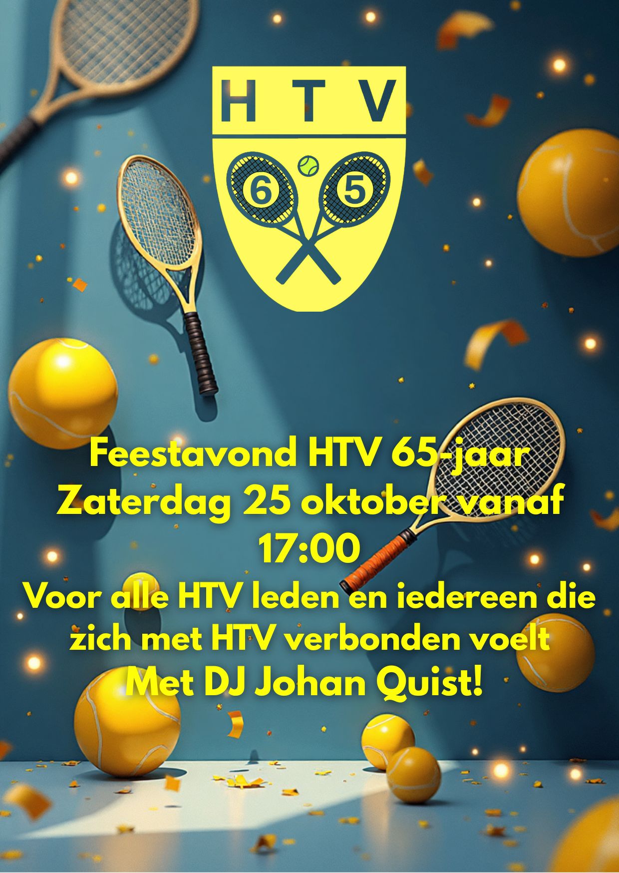 Wij willen jullie graag uitnodigen voor de feestavond tijdens de SCK op zaterdag 25 oktober, ter ere van het 65-jarig bestaan van HTV. Wij hopen jullie allemaal te zien om er onder het genot van een drankje, gebakje, hapje en muziek een feestelijke avond van te maken. Tot dan!